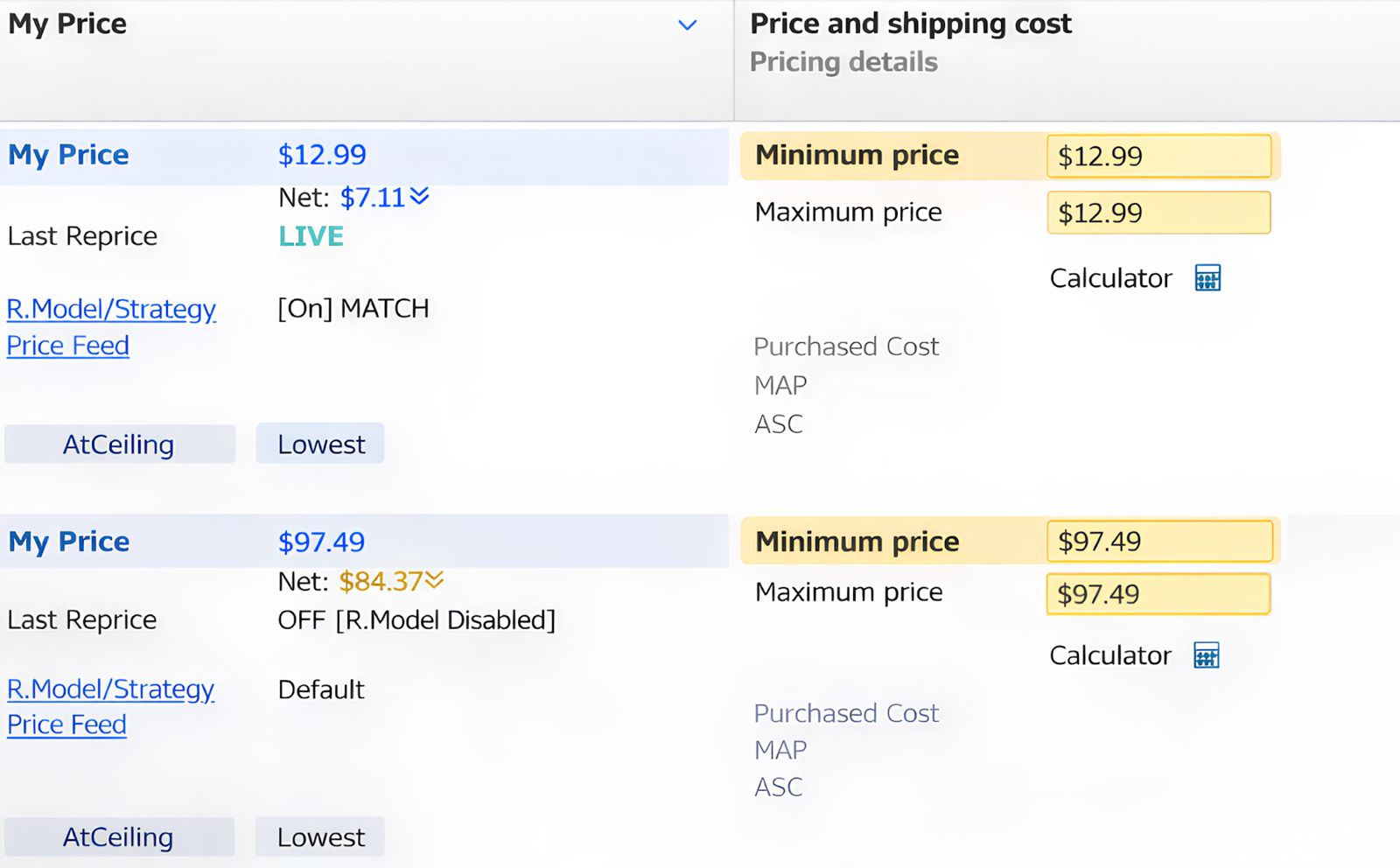 Step 2. Set Min & Max Prices to Enable Repricing